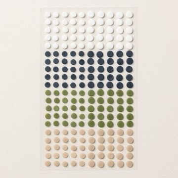 Add subtle texture and style with these adhesive-backed dots in a calming neutral palette of beige, olive green, dark blue, and white. Their matte finish makes them perfect for understated elegance on cards, scrapbooks, and paper crafts. Easy to use, these dots bring a simple yet refined touch to any project.